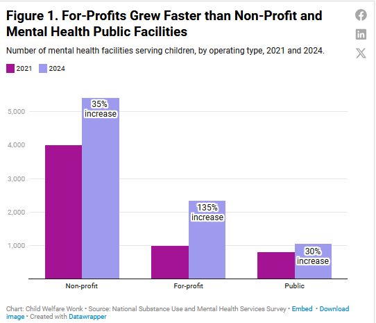 For-profit facilities now make-up a quarter of all children’s mental health facilities, growing by 130 percent from 2021 to 2024.