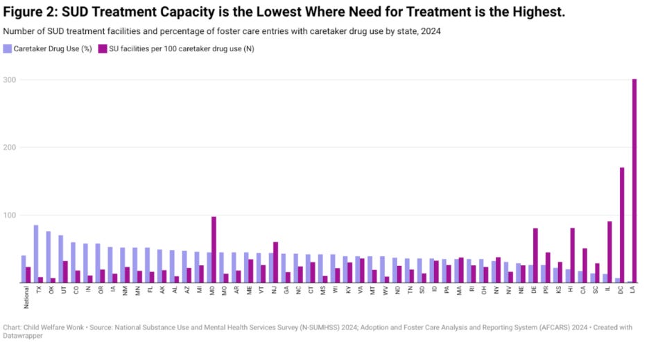 A concrete view of that emerges from our recent analysis on the relationship between SUD treatment capacity and foster care entries related to parental drug use: