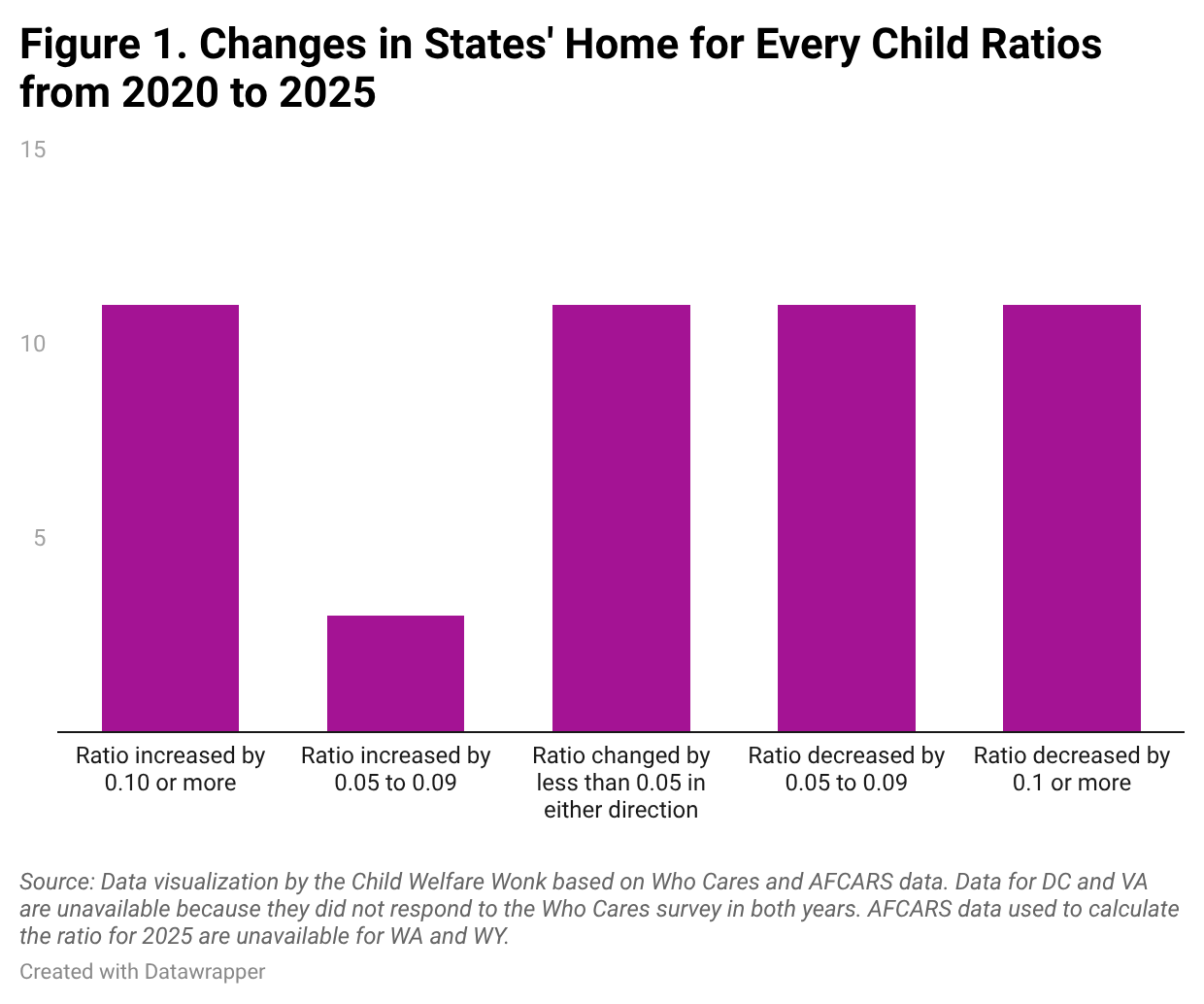 Our most recent release maps how every state’s ratio of foster homes to children in foster care shifted between 2020 and 2025.